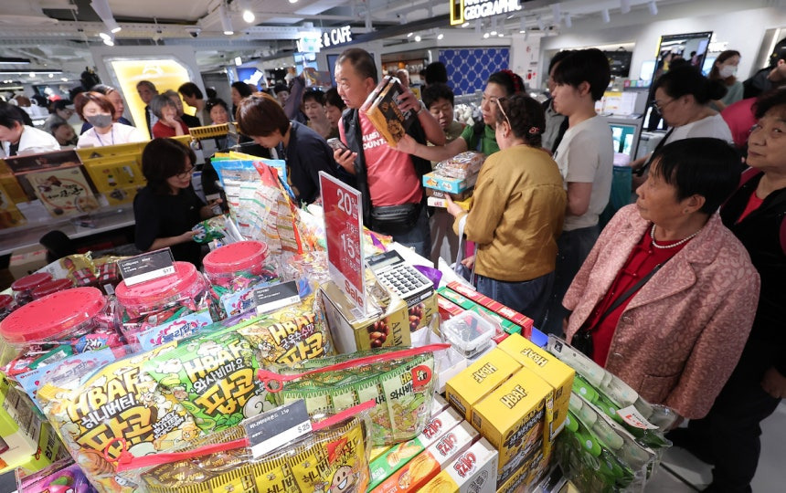 중국 관광객들이 K-팝 앨범, 빙그레 바나나맛우유, K-푸드 간식 등을 대량 구매했습니다. 특히 오리온, 농심, 삼양식품의 한정판 제품들이 인기를 끌며 매출 상위를 차지했습니다.