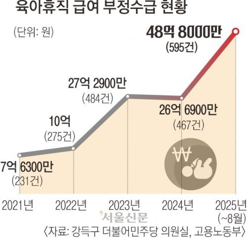 실제로 올해 1~8월 기준 육아휴직 급여 총액은 약 2조 3167억 원으로 전년 대비 12.9% 증가했지만, 부정수급액은 같은 기간 80% 이상 폭증했다.