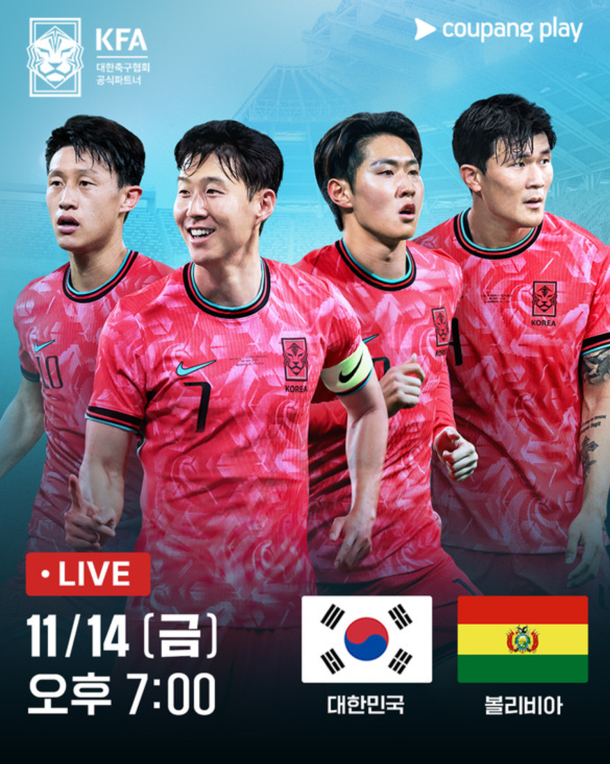 이번 한국 vs 볼리비아 A매치는 TV조선, tvN, 쿠팡플레이 등 주요 플랫폼에서 동시 생중계됩니다.