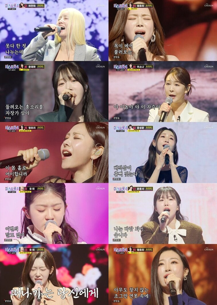 TV조선 인기 예능 ‘미스트롯4’가 준결승을 마치고 드디어 결승에 오를 TOP5를 확정했다.