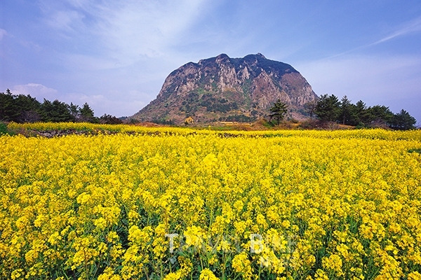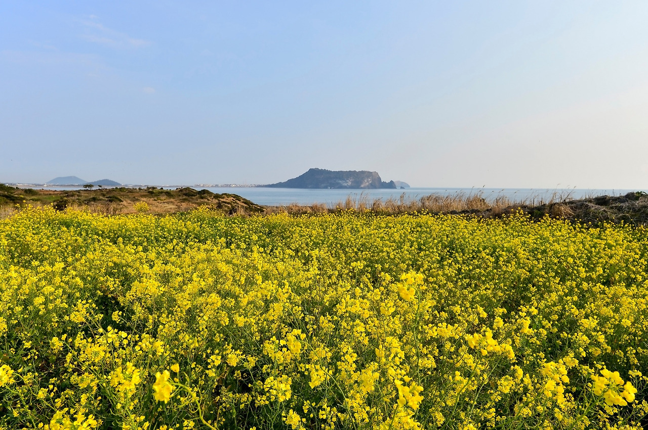 성산일출봉, 산방산 주변에는 노란 유채꽃이 가득하다.