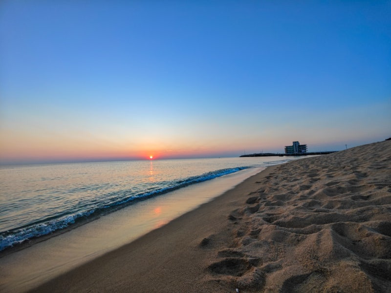 카페 거리와 함께 여유로운 바다 산책을 즐기기 좋다.
